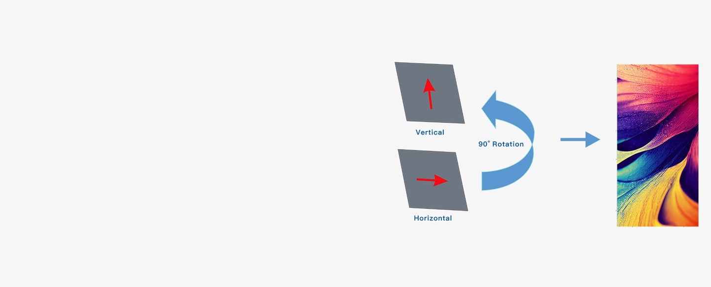 Both cabinets and modules support 90° rotation, enabling easy vertical splicing to enhance adaptability and utilization. Vertical installation efficiency increases by 50%, while effectively eliminating color shift from side viewing angles.
