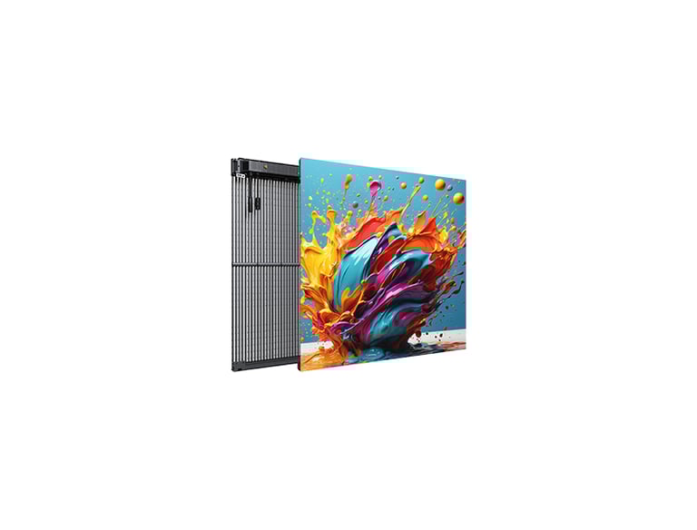 Close-up of a vibrant LED screen showcasing crisp, colorful visuals in a modern setting.
