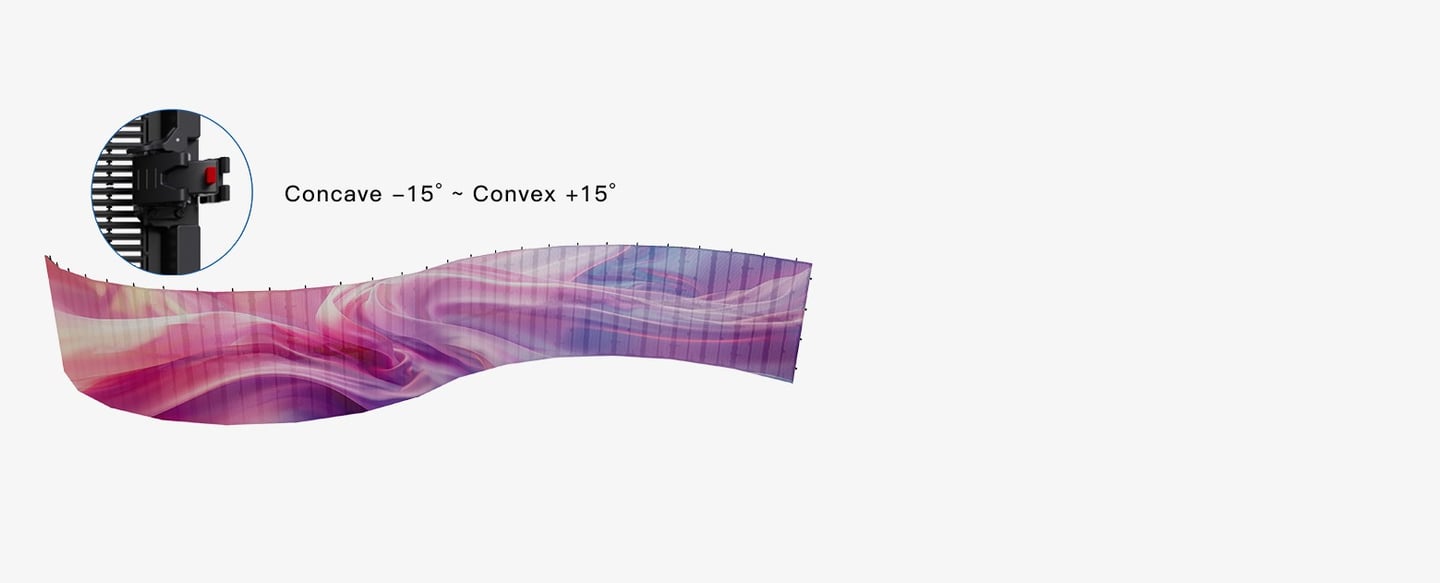 Supports concave and convex configurations with 7 adjustable angles (-15° to 15°). The modular design ensures precision and stability for large-angle outdoor curved setups.